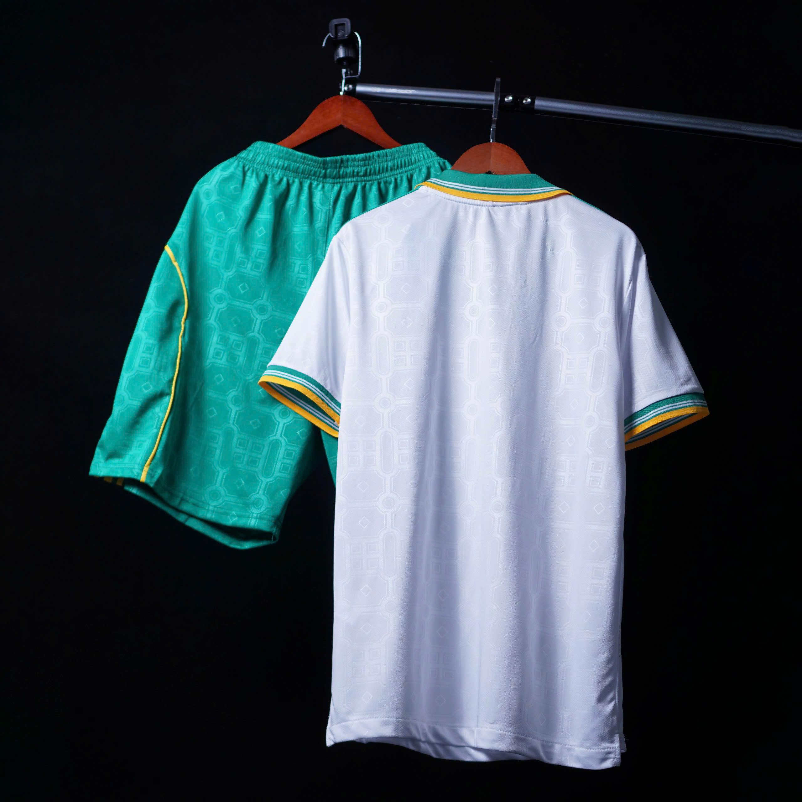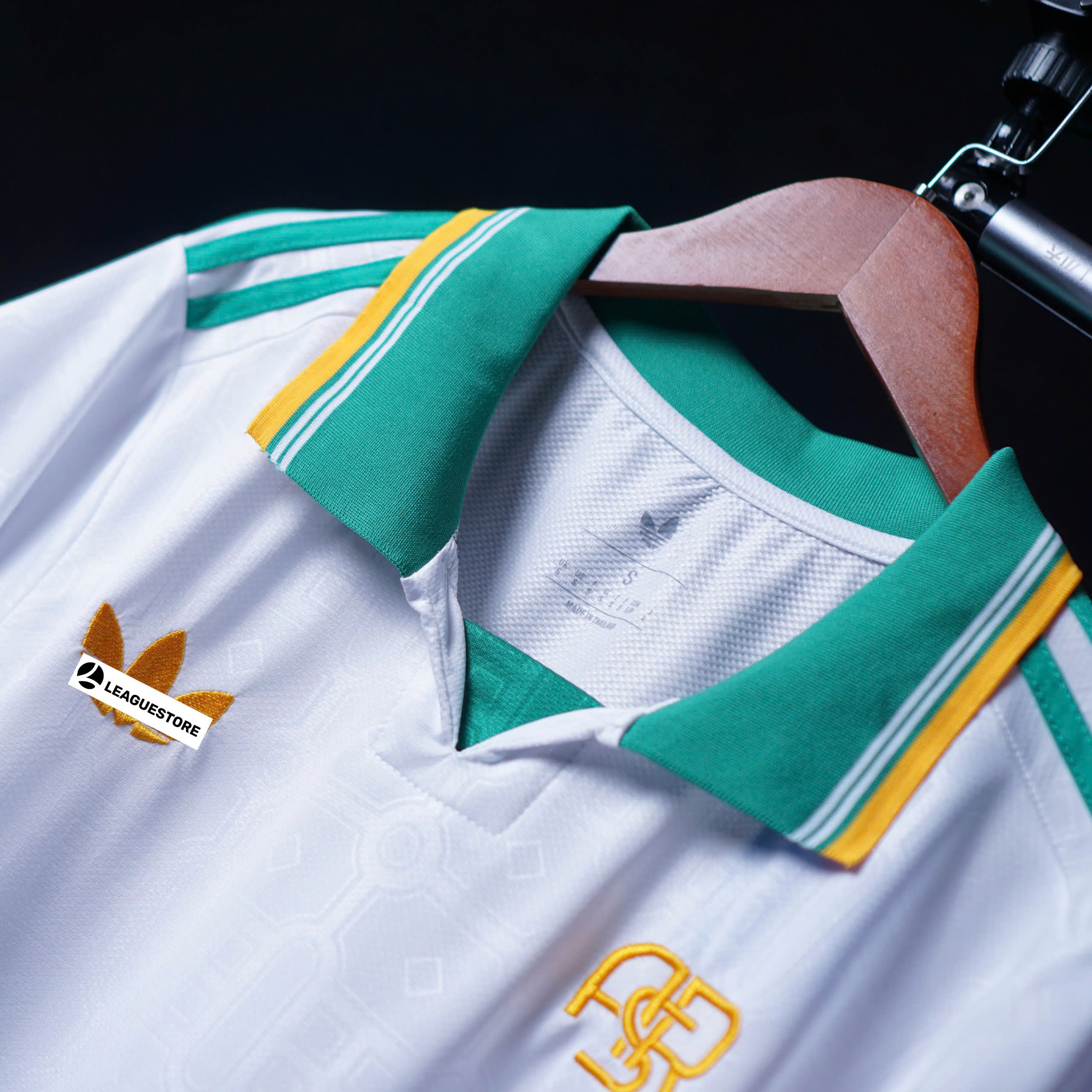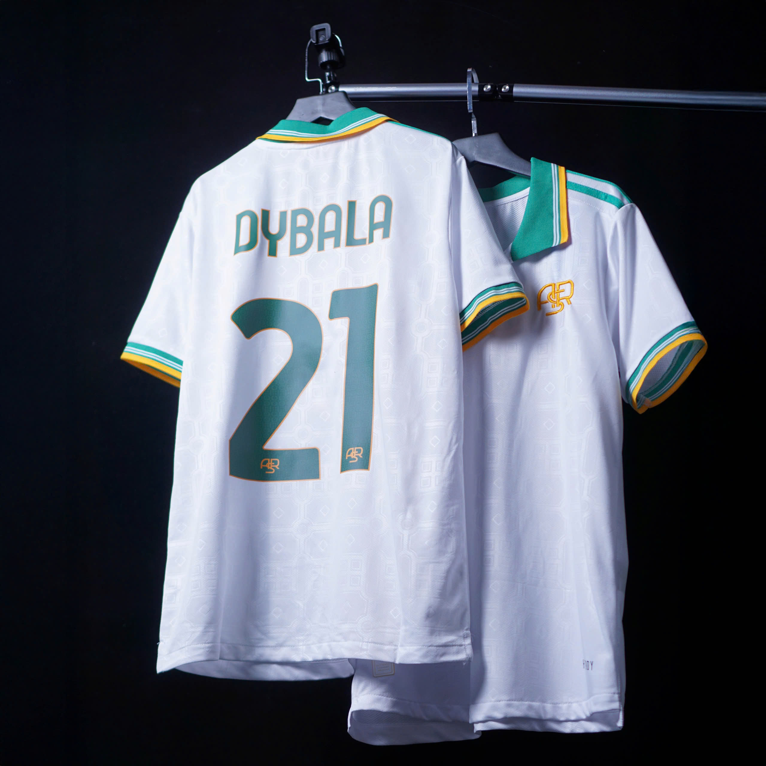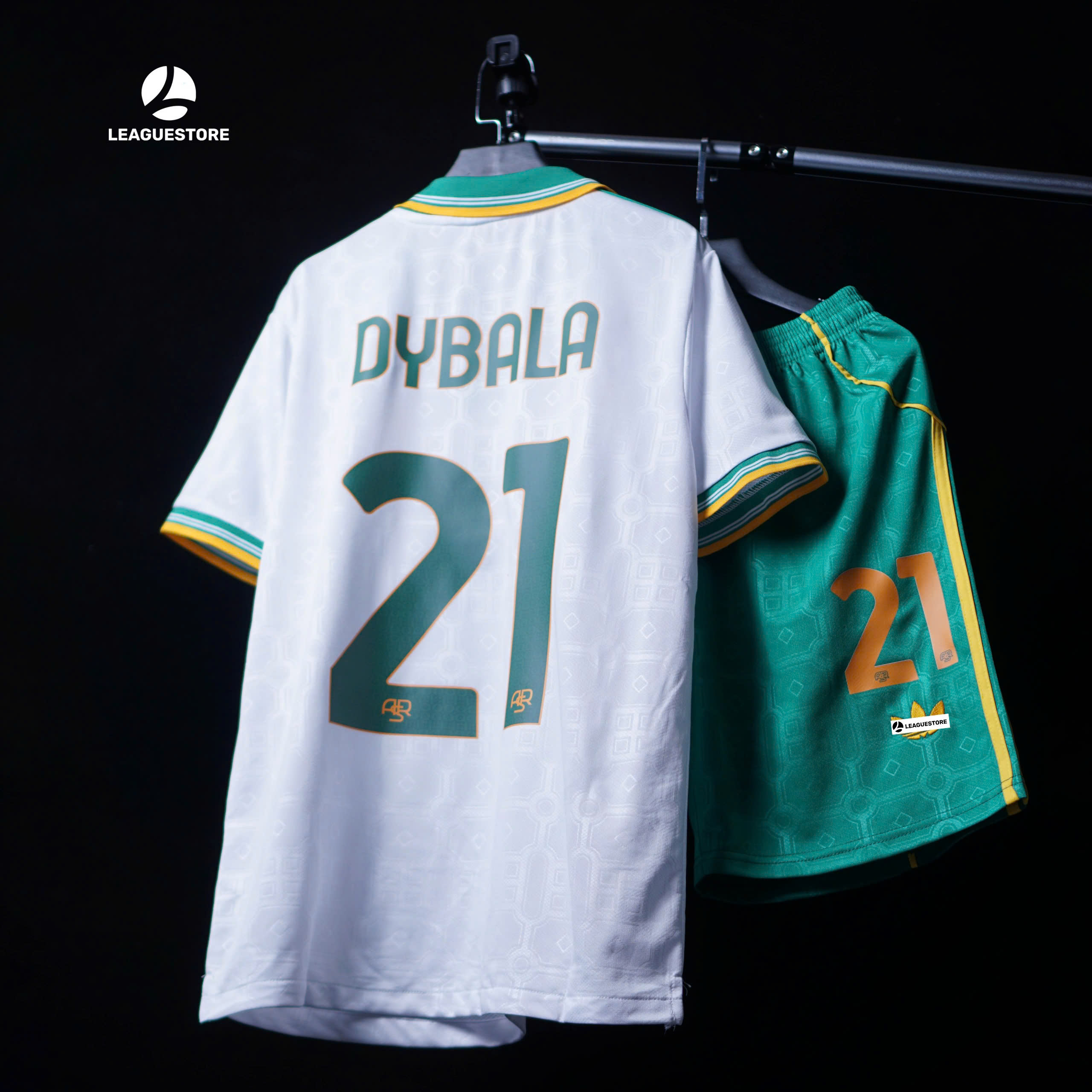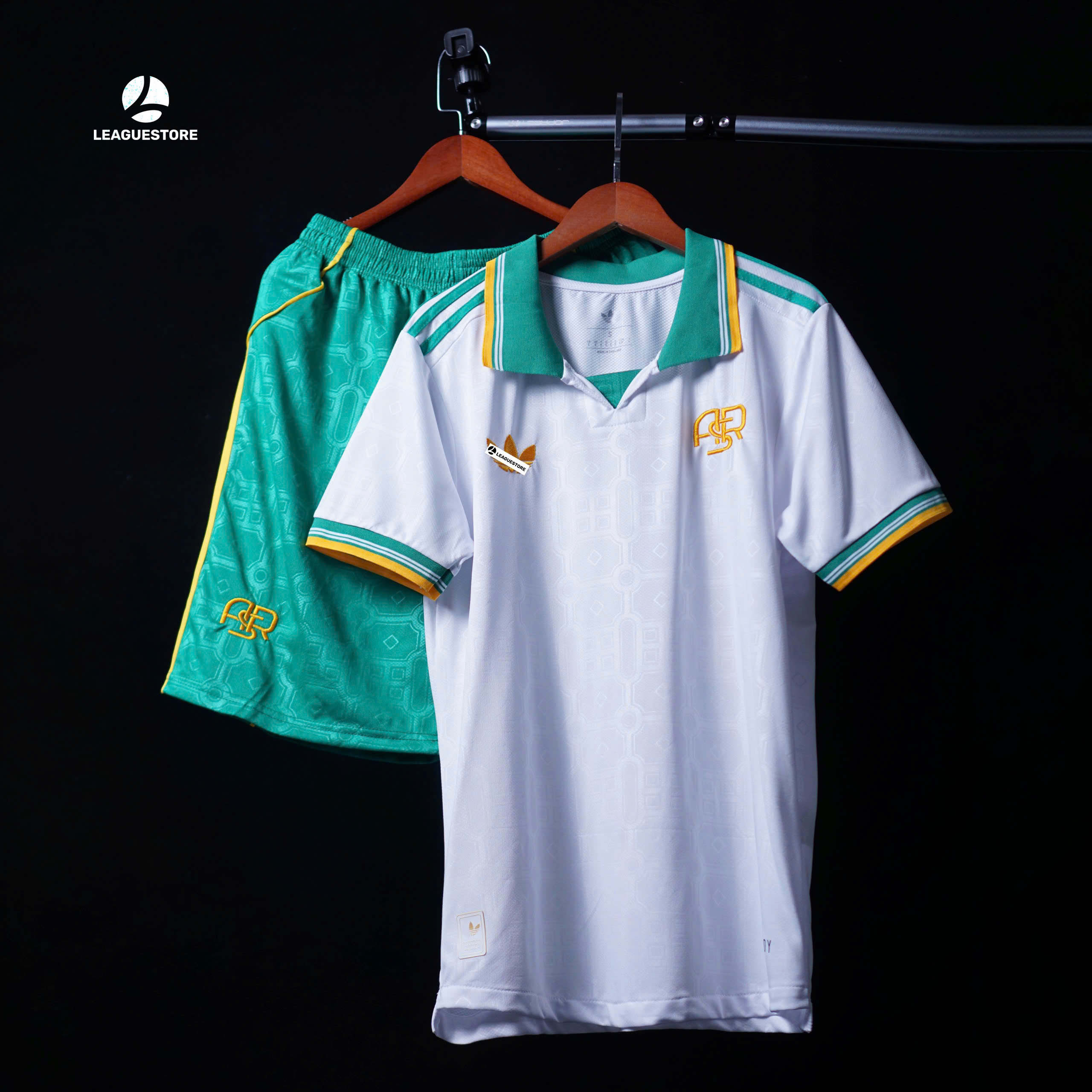 Thiết kế lấy cảm hứng từ phong cách cổ điển của AS Roma, phối màu trắng – xanh – vàng thanh lịch.