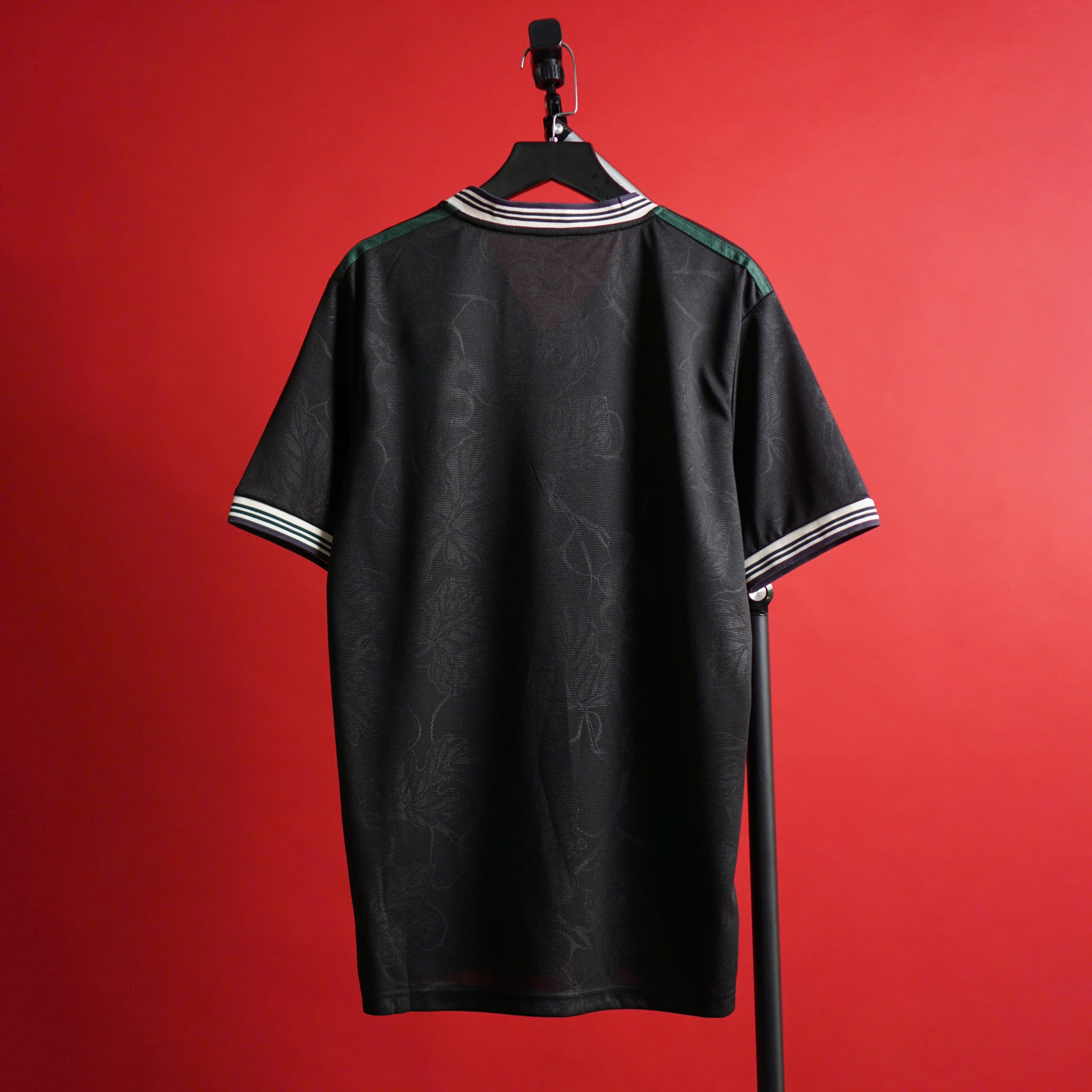 Mẫu Juventus 3rd 25/26 bản fan nổi bật với tông đen mạnh mẽ kết hợp xanh rêu độc lạ trên phần cổ và tay áo. Họa tiết chìm trên thân áo tạo chiều sâu và sự khác biệt, mang đến phong cách vừa hiện đại vừa cá tính cho fan Bà Đầm Già.