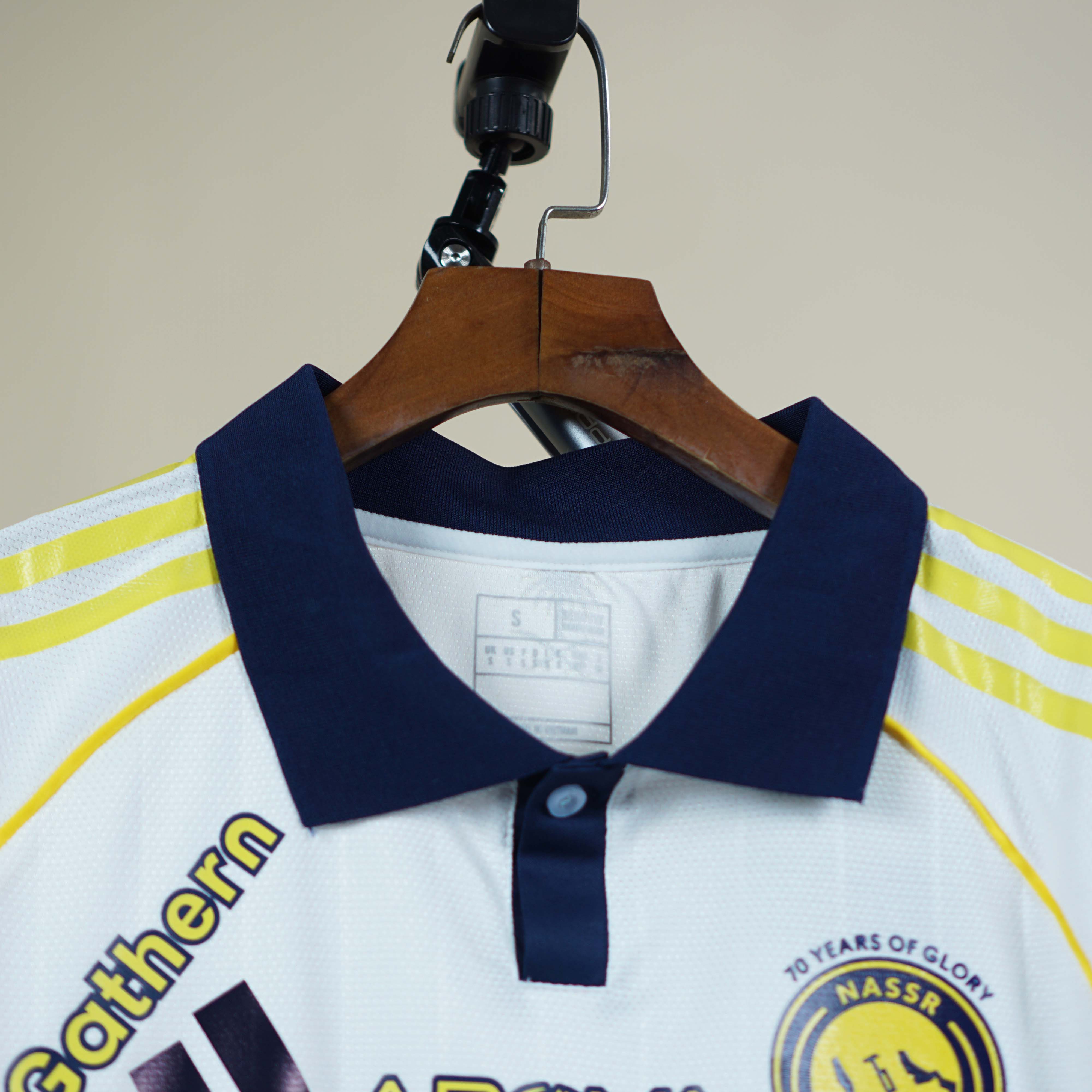 🟡 Bộ Áo Đấu Al Nassr Sân Khách 2025/26 – Màu Trắng Sang Trọng, Điểm Vàng Đẳng Cấp