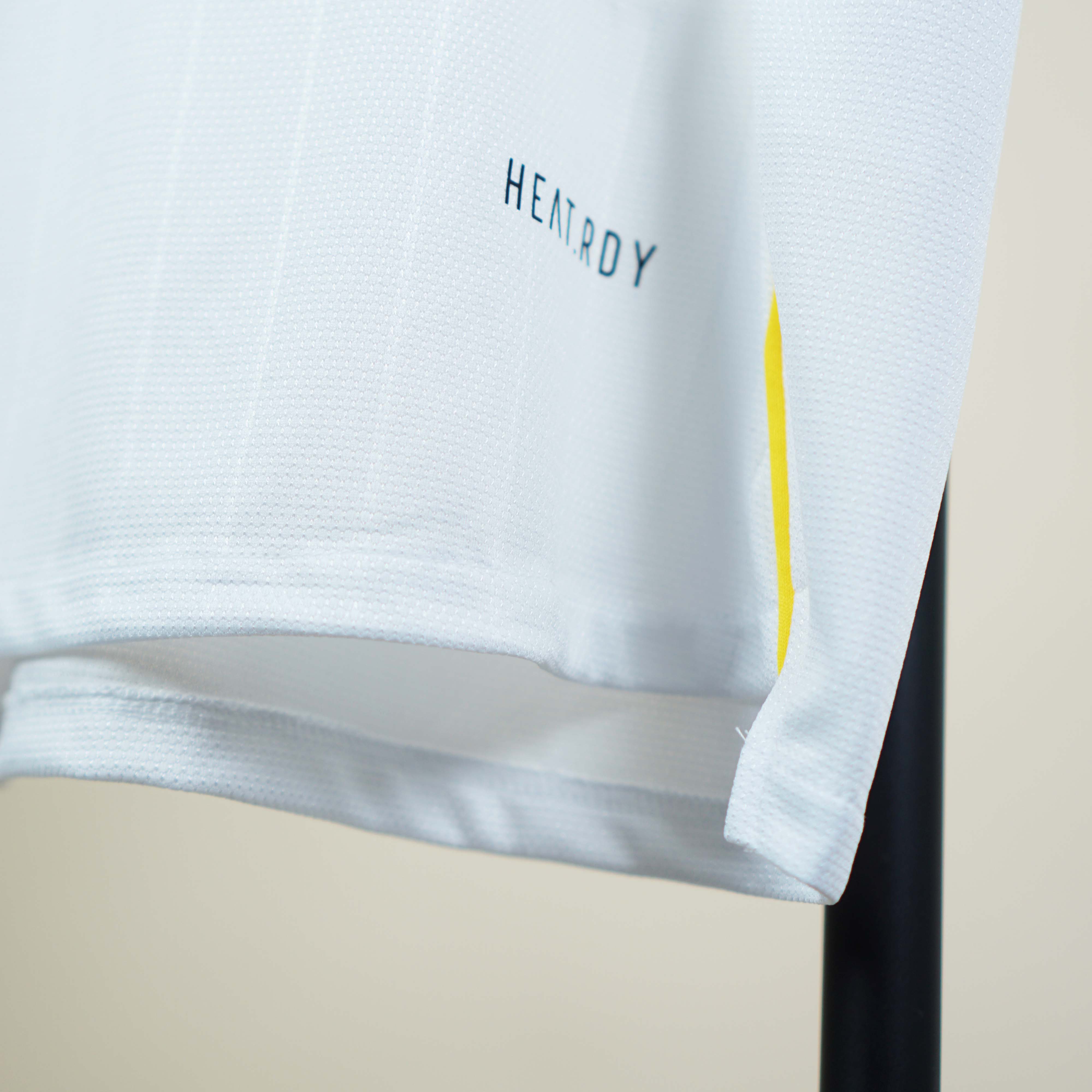 Từng đường viền, họa tiết vàng chạy dọc thân áo thể hiện phong cách tối giản mà vẫn sang trọng, phù hợp cho cả thi đấu lẫn mặc thường ngày.