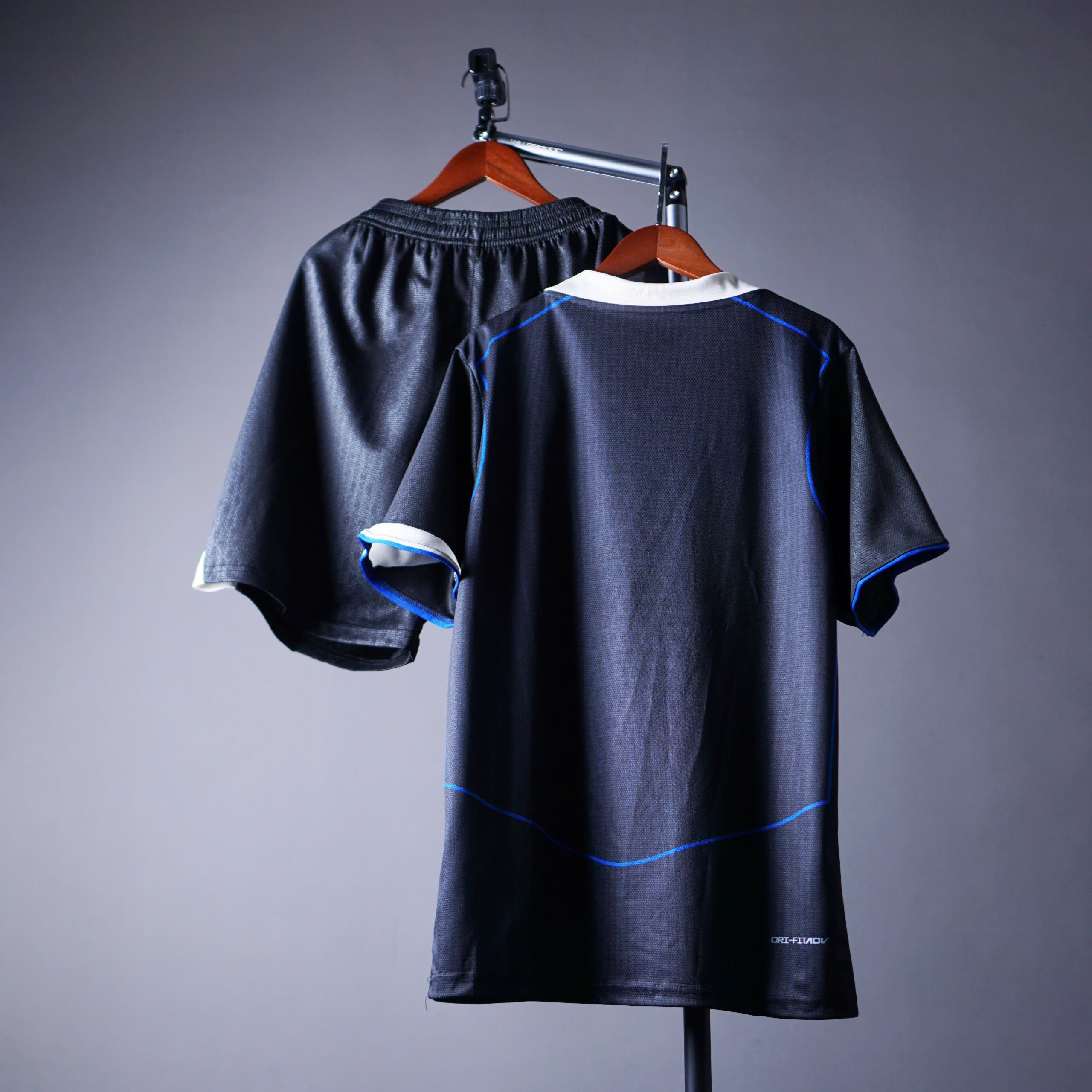 • Màu sắc: Đen chủ đạo – phối xanh dương, cổ trắng nổi bật